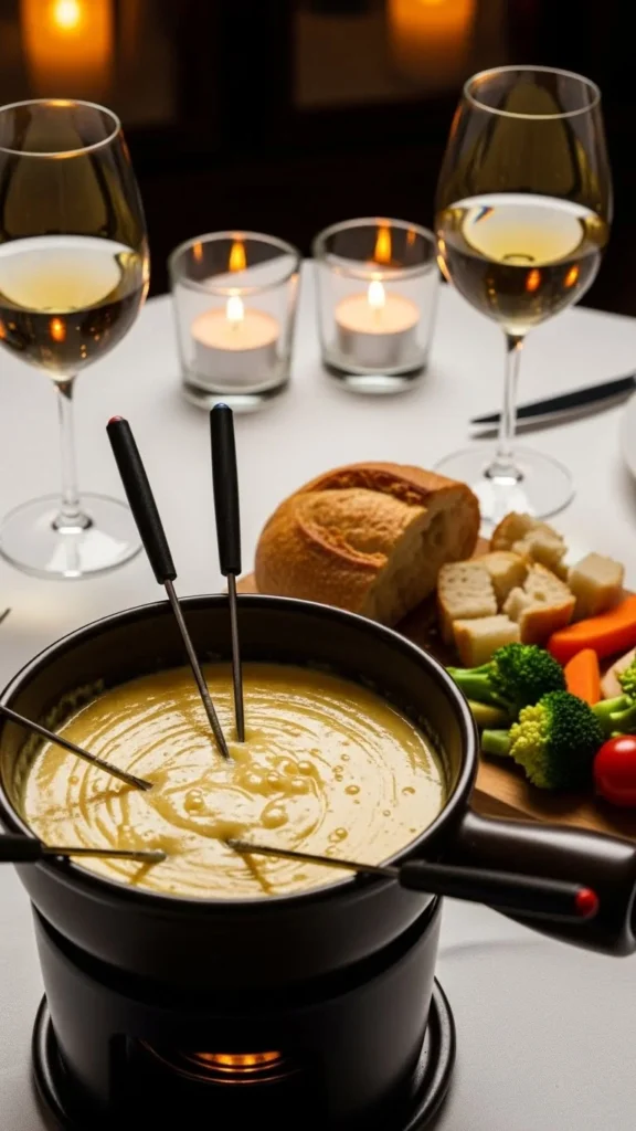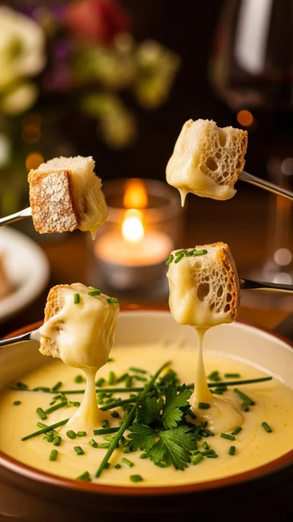 This fondue adds fresh herbs and garlic to give the cheese a more aromatic, restaurant-style taste. It works beautifully for an intimate date night because the flavors are comforting yet refined. The herbs keep the fondue from feeling too heavy.