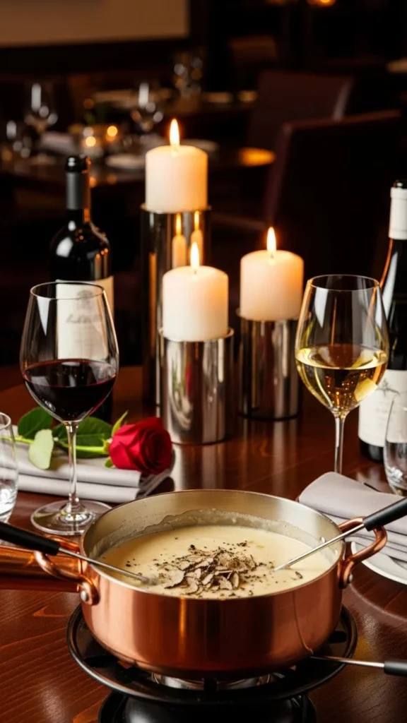 This fondue uses truffle-flavored cheddar or truffle oil to create a more luxurious taste. The flavor is rich, savory, and slightly earthy, making it perfect for a Valentine’s dinner that feels elevated. A small portion goes a long way.