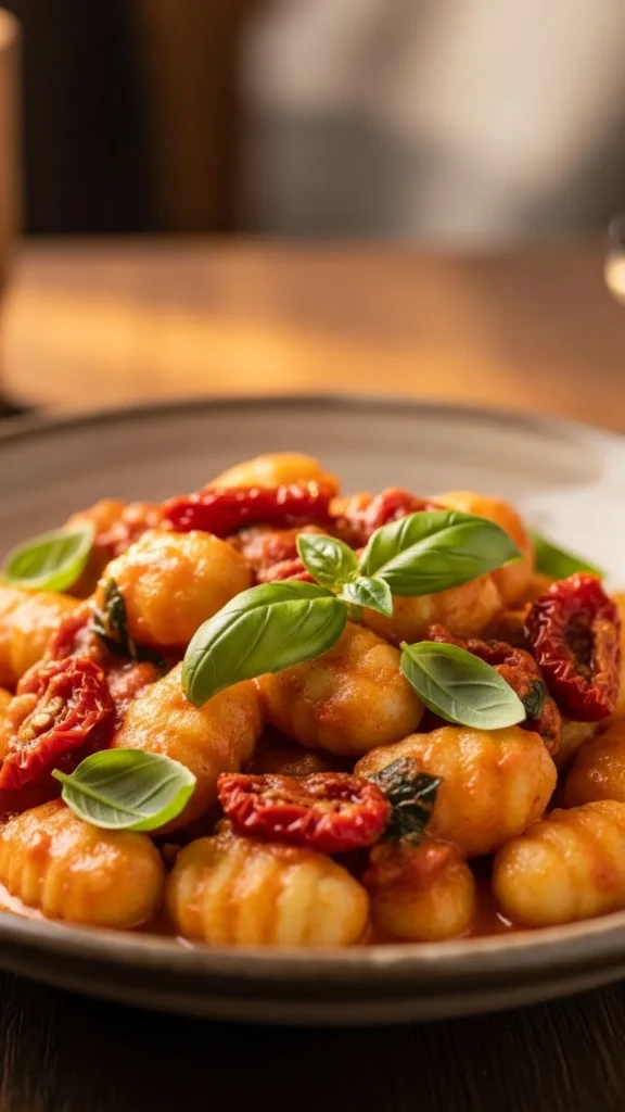 Sun dried tomatoes bring a deep, slightly sweet flavor that works well with cream sauces. The gnocchi adds a pillowy texture that makes the dish feel cozy and filling.