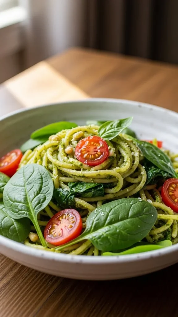 22. Spinach Pesto Pasta with Cherry Tomatoes