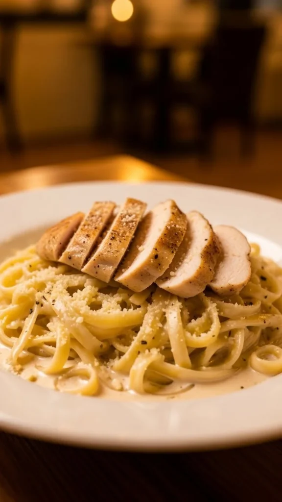 This is one of the most popular date-night pasta choices because the sauce is rich and silky while the noodles stay tender. Chicken adds a comforting protein without overpowering the cream and parmesan. It feels special while still being simple enough to make at home in under 30 minutes.