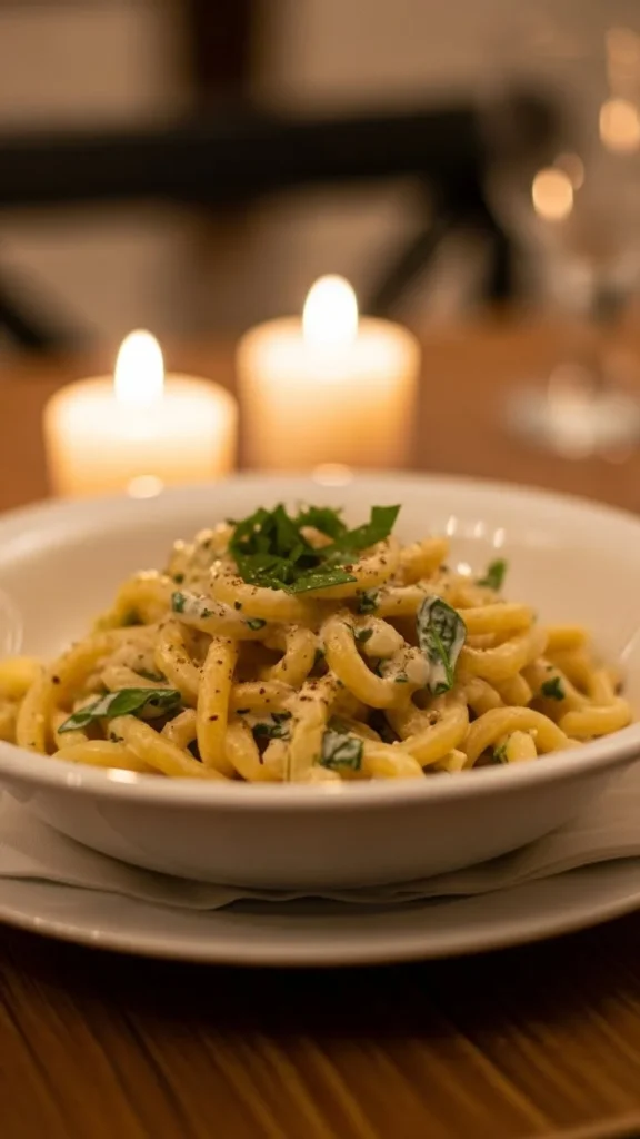Ricotta creates a creamy sauce without being heavy. Lemon keeps the flavor bright, making this a popular choice for light romantic dinners.