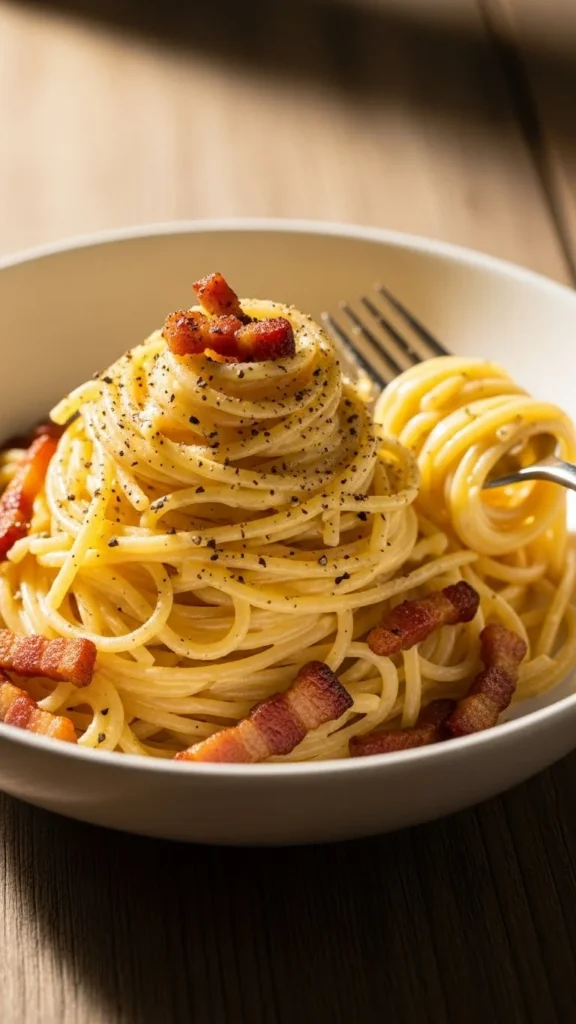 Carbonara is a classic pasta that relies on eggs, cheese, and pancetta rather than cream. It is rich but not heavy, making it popular in romantic dinner menus. The texture is silky and the flavor is savory and balanced.