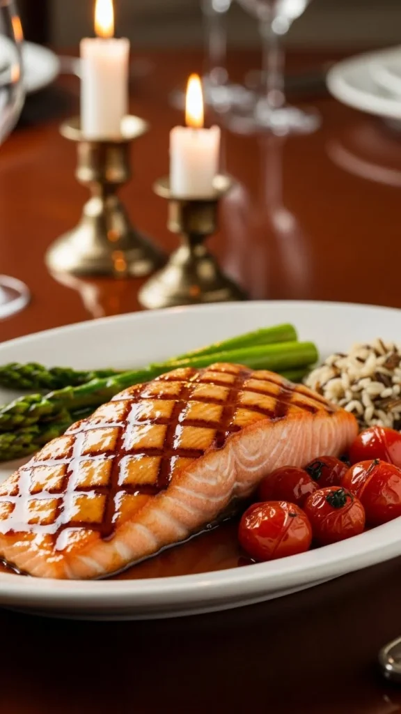 Serve with steamed vegetables or rice. The glaze adds warmth and depth, making the dish ideal for a romantic dinner at home.