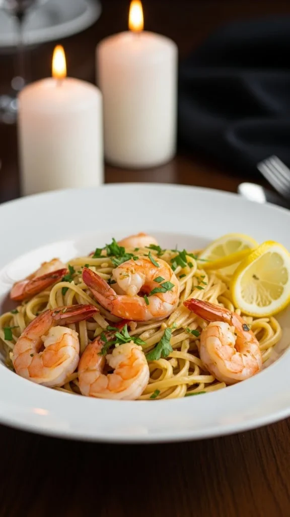 Serve immediately so the pasta remains glossy. The fresh lemon keeps the dish lively and perfect for a romantic evening.