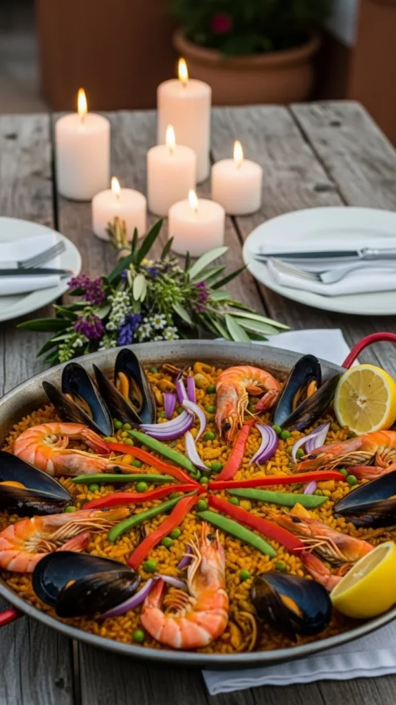 Seafood paella brings together shrimp, mussels, and rice in a colorful dish that feels festive and warm. The rice absorbs seafood flavor as it cooks, creating a rich and aromatic meal.