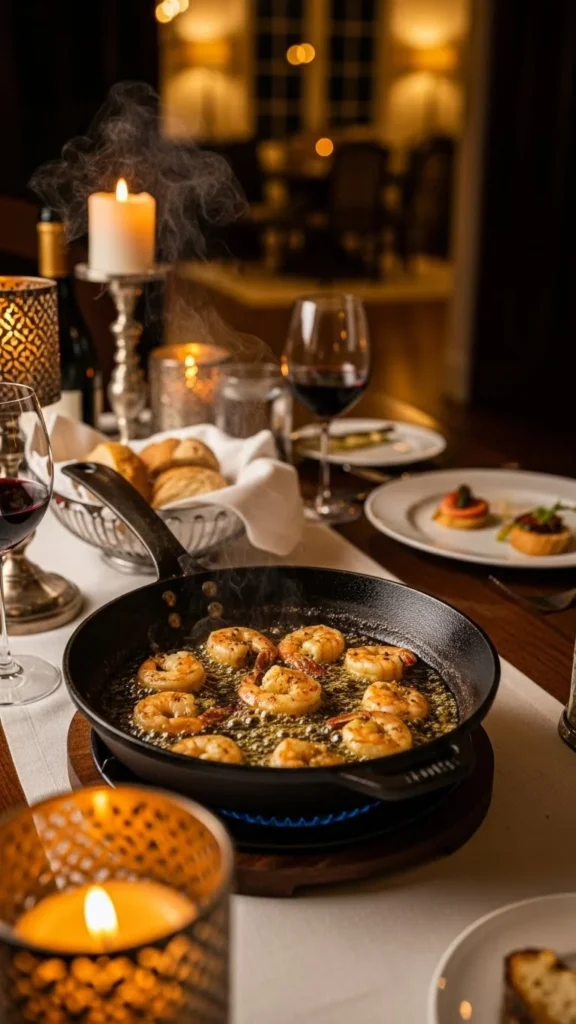 Serve in shallow bowls with a sprinkle of herbs. The combination feels indulgent and romantic, perfect for a slow, candle lit dinner.