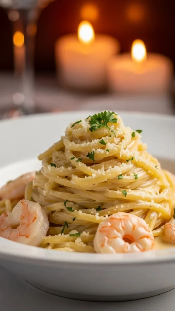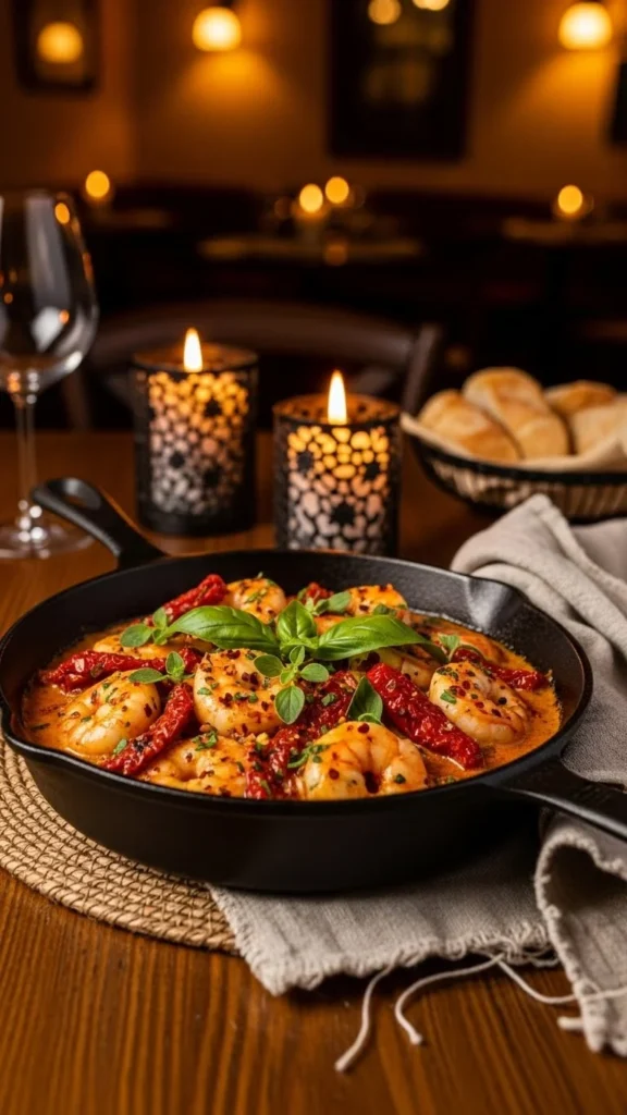 This recipe features shrimp cooked in a creamy sauce with garlic, sun-dried tomatoes, and herbs. The flavors feel rich but balanced, giving the dish a cozy Italian restaurant style. It is especially good for couples who enjoy creamy seafood meals.