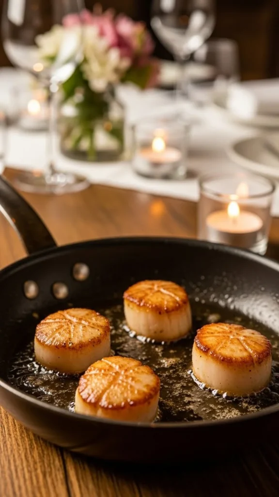 Seared scallops are often served in high-end restaurants, but they are surprisingly simple to make at home. When cooked correctly, they turn golden on the outside and stay tender inside, while garlic butter brings warmth and aroma. This recipe feels refined, intimate, and perfect for a Valentine dinner for two.