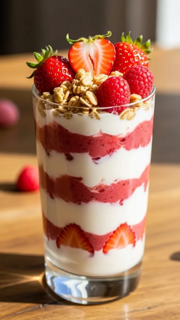 Serve chilled in a tall glass and garnish with fresh berries for a colorful finish.