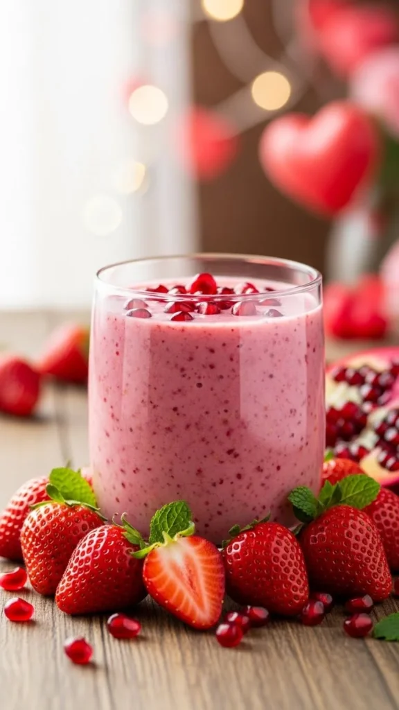 Pomegranate is often highlighted in Valentines recipes because of its symbolic connection to love and romance. When blended with banana and yogurt, it creates a refreshing smoothie with a bold pink color and light sweetness.