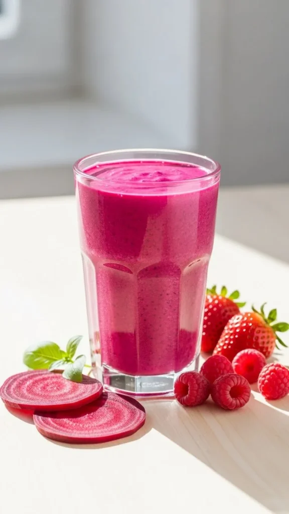 Beet smoothies have become trendy because they create a natural pink shade without artificial coloring. When blended with banana and strawberries, the beet flavor becomes mild and sweet, creating a creamy smoothie that tastes like a fruity treat while also feeling nourishing.