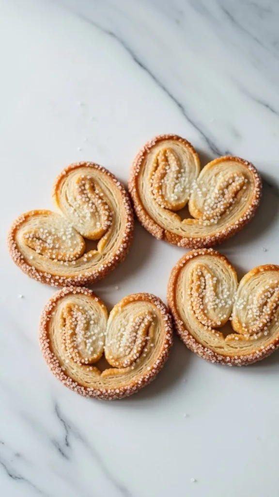 Heart shaped palmiers are often featured as elegant yet simple Valentine pastries. Puff pastry creates a light, flaky texture that feels bakery quality without requiring complicated techniques.