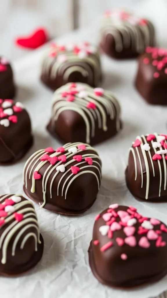 Chocolate covered strawberries are already symbolic of romance, and shaping them into hearts makes them even sweeter. This idea blends classic Valentine flavors with cute presentation.