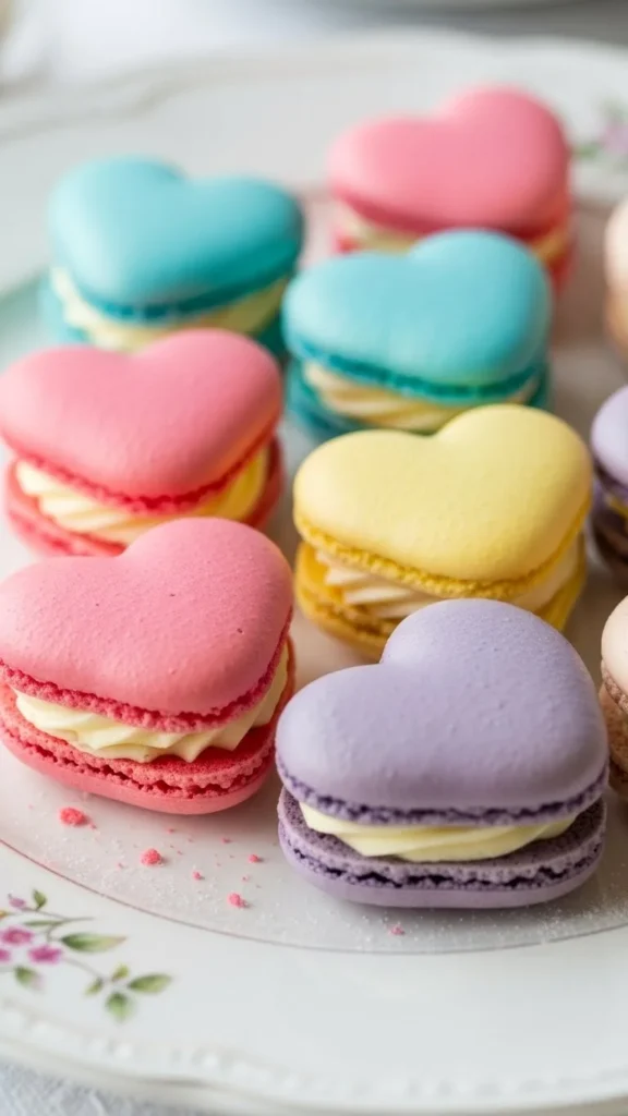 Heart shaped macarons are often featured as upscale Valentine treats because they look refined and gift worthy. Their light texture and sweet filling feel special for romantic celebrations.
