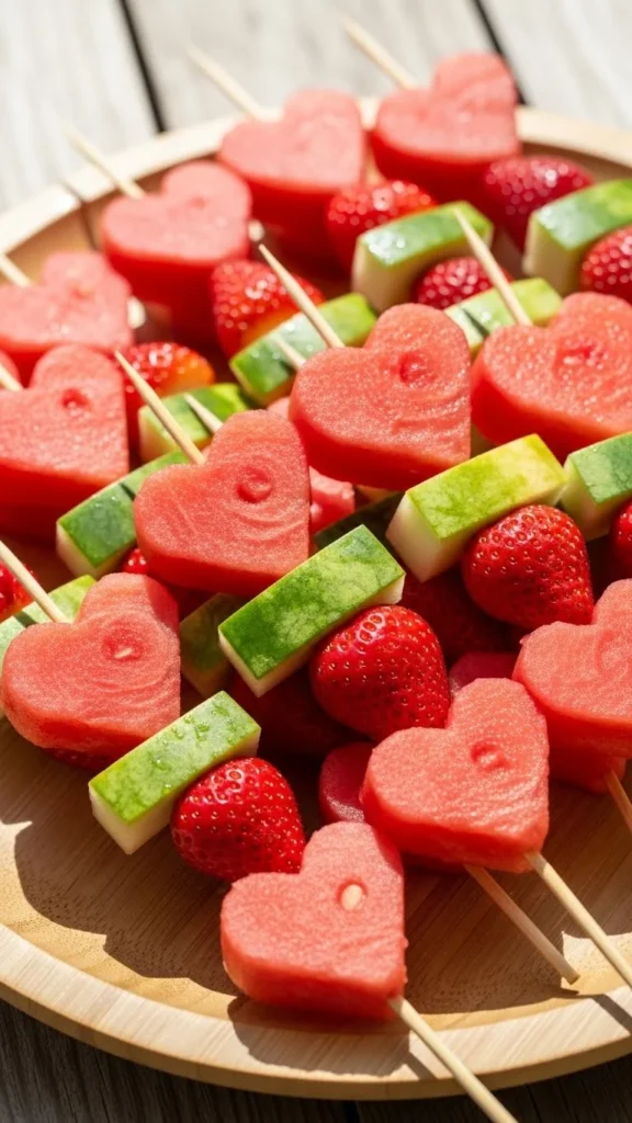 Heart shaped fruit skewers appear often as healthier Valentine options. They add color to party tables and appeal to both kids and adults who want lighter treats.