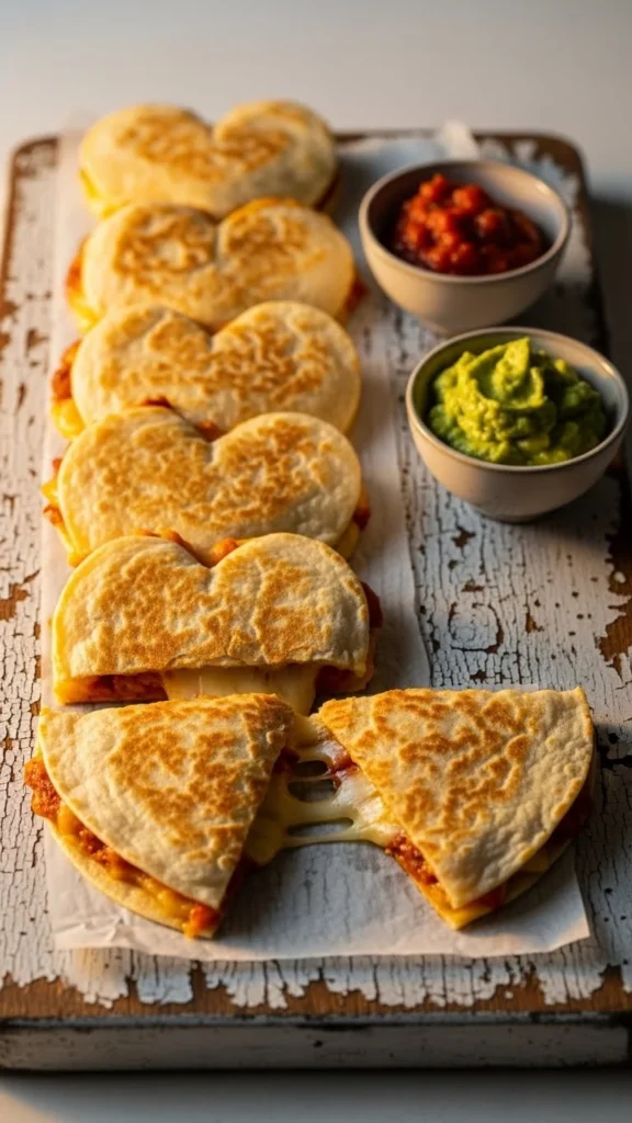 Serve warm with dips like salsa, guacamole, or sour cream. The heart shape makes this simple snack feel fun and thoughtful for Valentine’s meals.