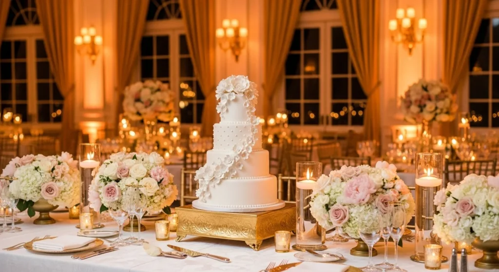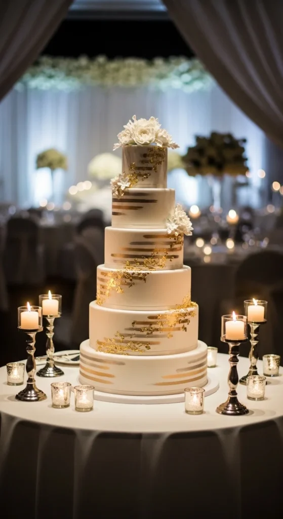2. Gold-Accent Luxury Wedding Cake