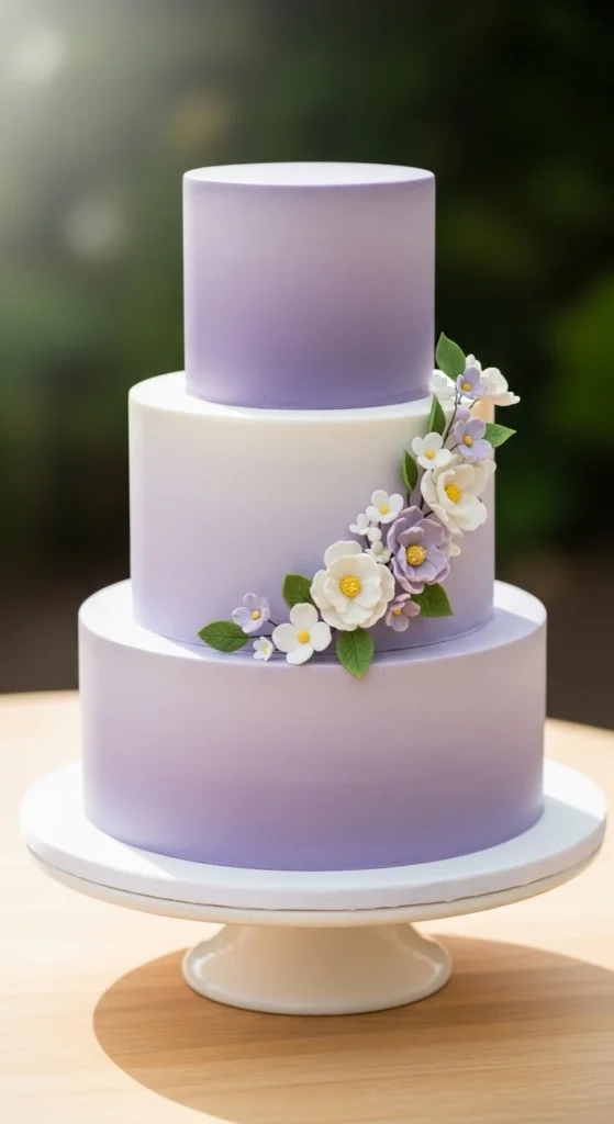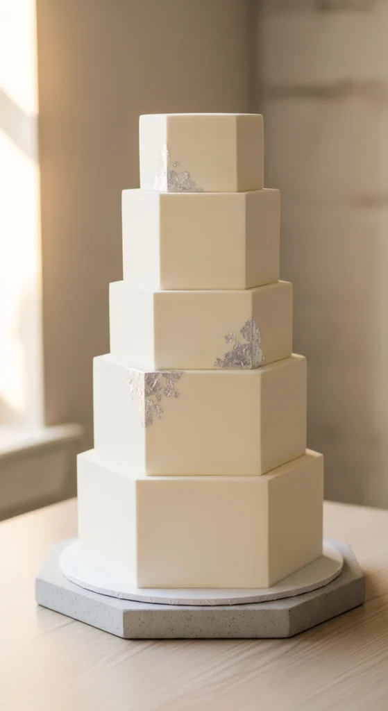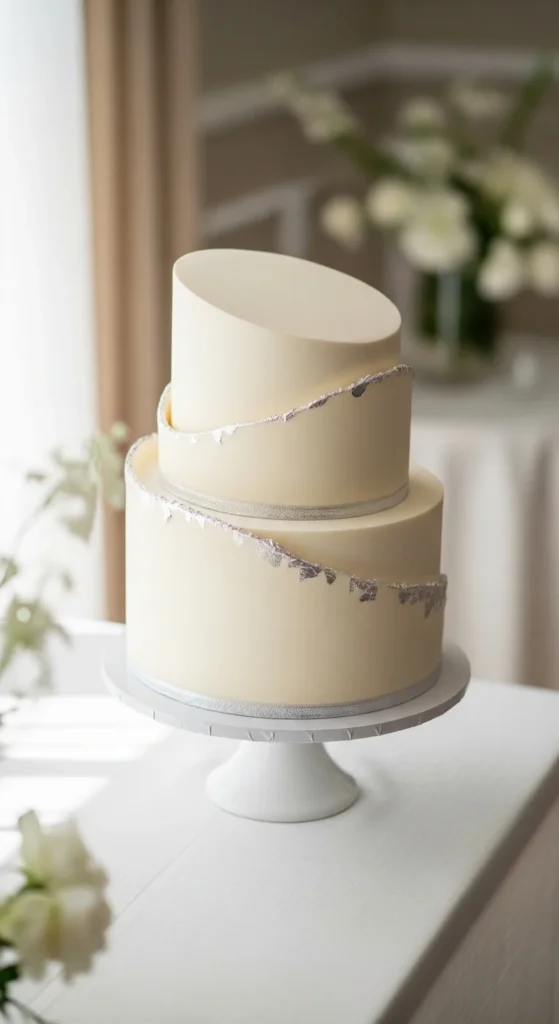 This cake brings a modern and polished look with soft silver tones and a subtle shine. It works well for contemporary weddings and pairs easily with cool color palettes. The finish is sleek and minimal, which keeps the design clean.