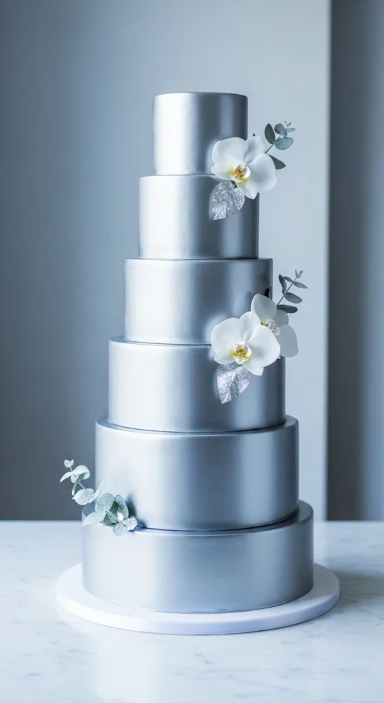 3. Silver Metallic Elegant Cake