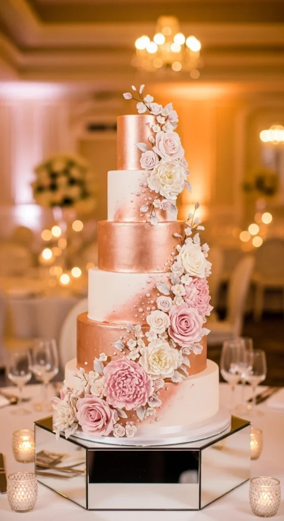 4. Rose Gold Wedding Cake Design