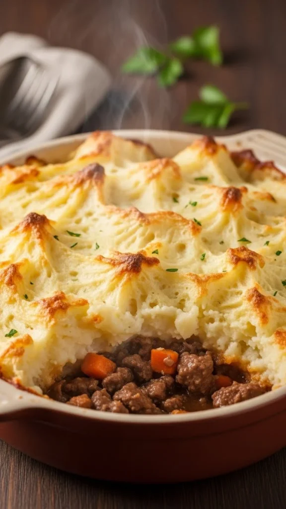 This version brings all the familiar flavors of shepherd’s pie in an easy casserole style. The mashed potatoes turn golden while the beef filling stays savory and warm. Perfect for cold winter nights.