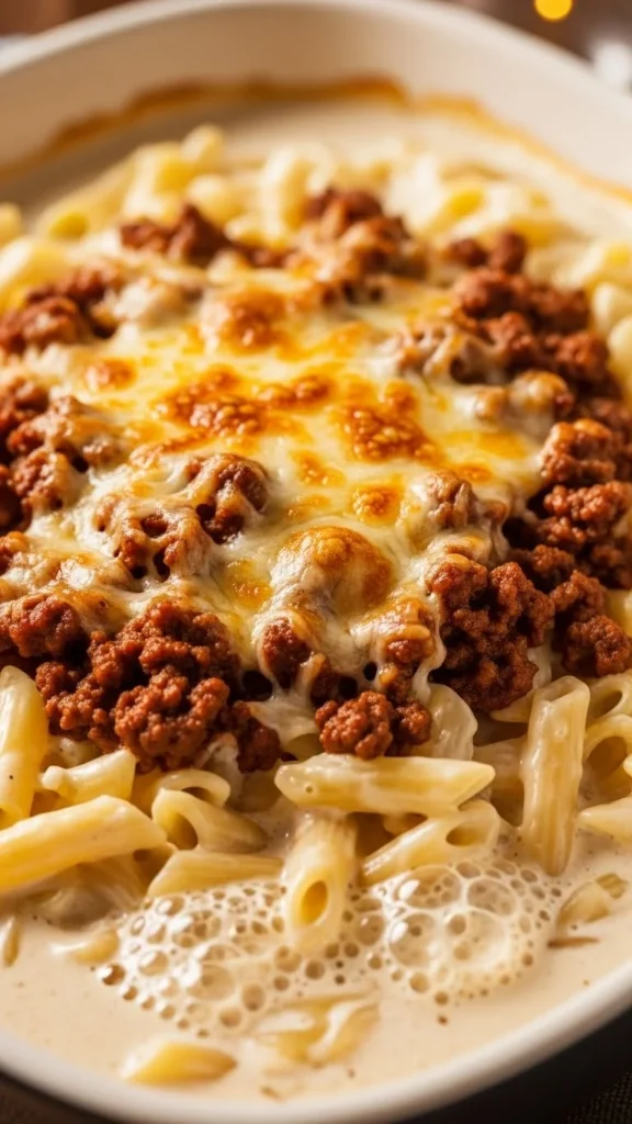 This casserole blends tender tortellini with savory beef in a warm tomato sauce. It’s simple, filling, and a great way to serve pasta to a full family. Everything bakes into a smooth, delicious dish.