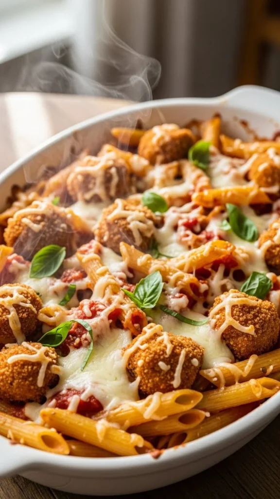 This casserole brings chicken Parmesan flavors into a simple pasta bake. The chicken stays tender, and the marinara coats everything evenly. Melty cheese finishes the dish beautifully.
