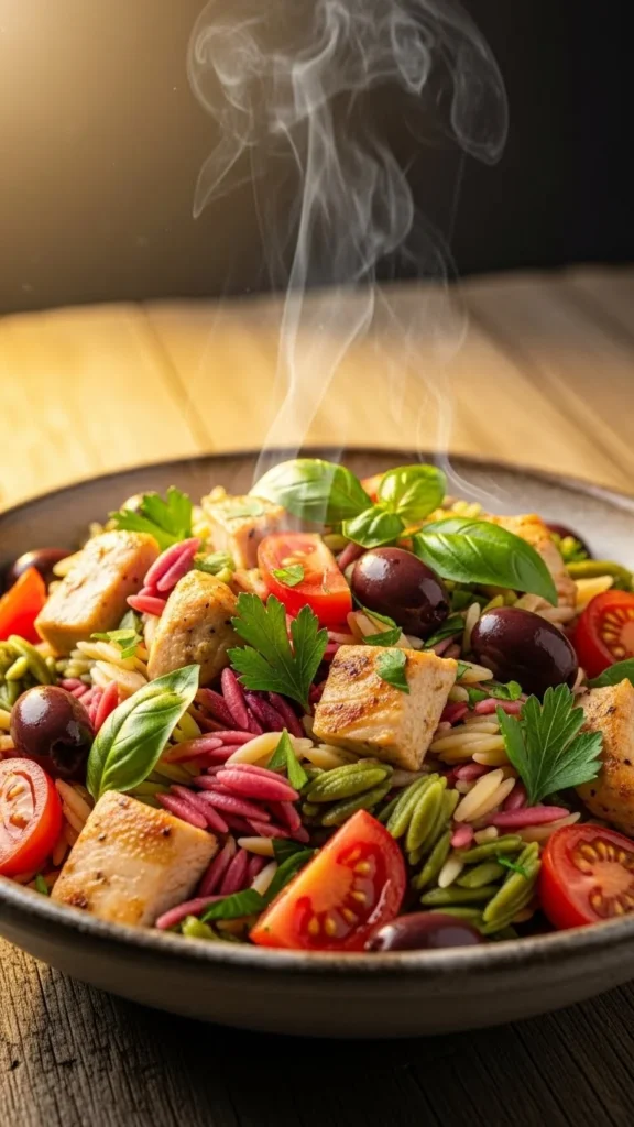 This casserole is vibrant and hearty with Mediterranean flavors. Orzo absorbs the broth and stays tender. The chicken, vegetables, and herbs blend into a warm, refreshing winter meal.