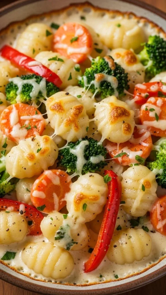 This casserole is creamy, colorful, and full of tender gnocchi. The Alfredo sauce coats everything with smooth richness. Vegetables bring freshness and balance. Great for meatless winter meals.