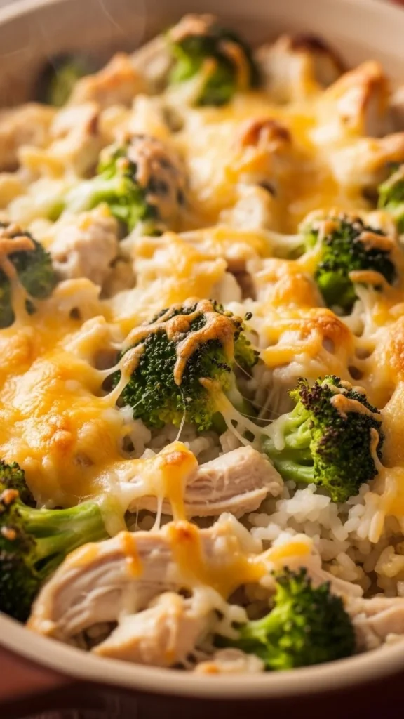 This casserole is creamy, warm, and packed with simple flavors. The chicken stays tender while the rice absorbs all the sauces. Broccoli adds color and freshness. It’s a family-style dinner that feels cozy and filling.