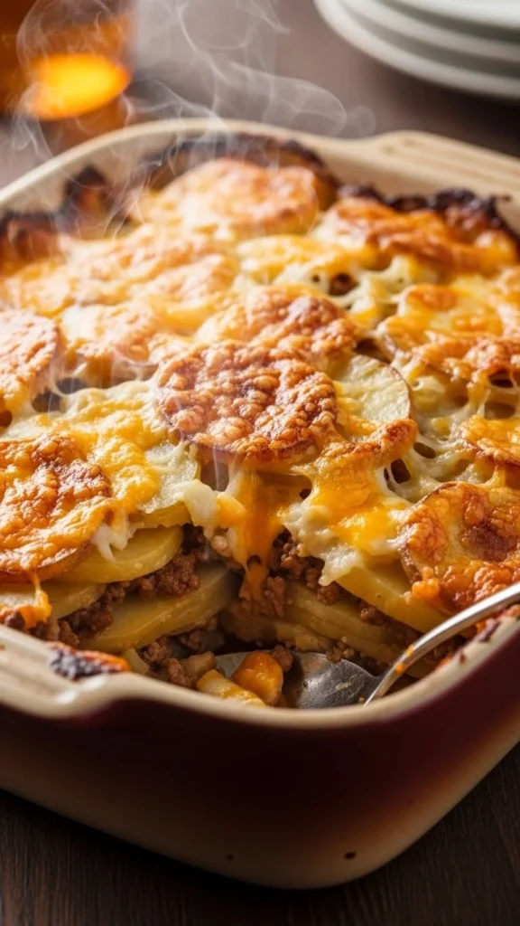 This casserole is hearty and rich with layers of potatoes and savory beef. The cheddar melts into a warm crust. It’s filling, simple, and great for feeding hungry families on cold nights.