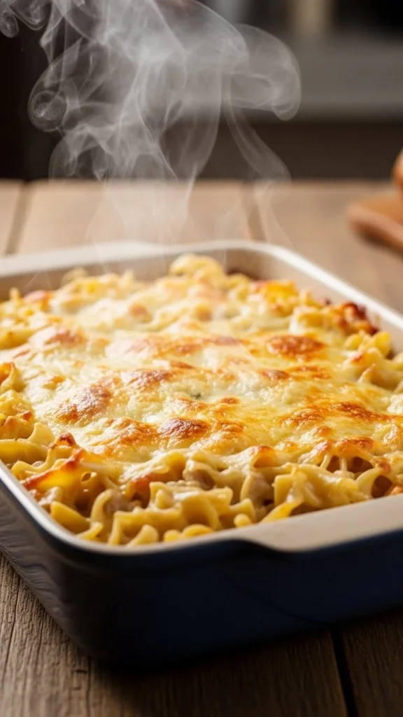 This casserole is smooth, comforting, and perfect for leftover turkey. The noodles soak up the creamy sauce, making each bite soft and warm. It’s a great winter dish for easy dinners.