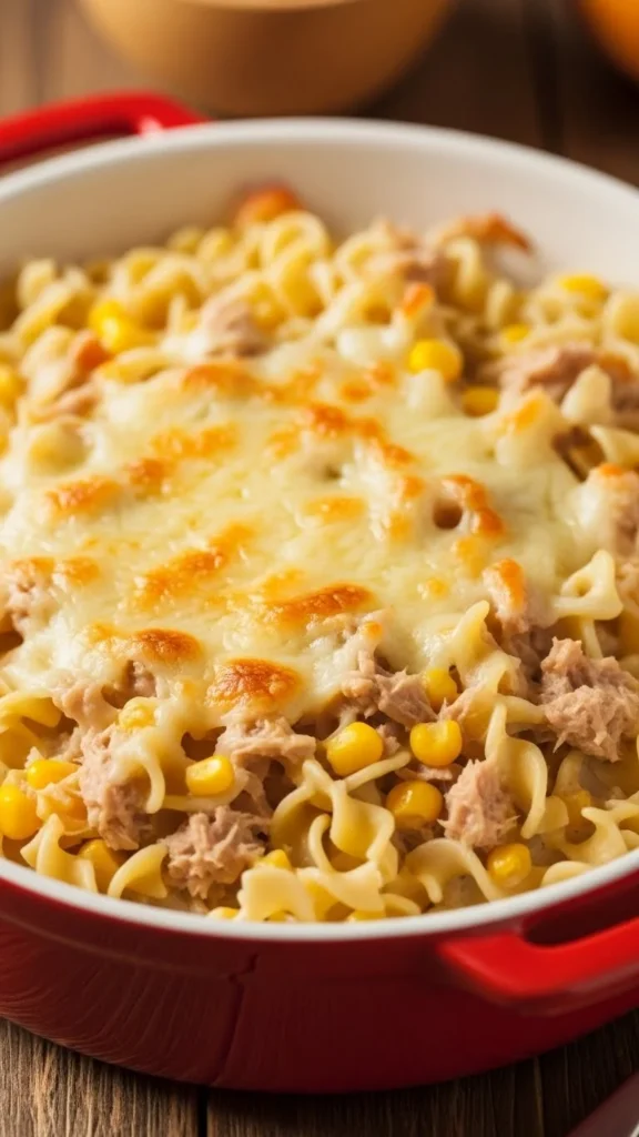 This casserole is smooth, savory, and bright from the sweet corn. The tuna mixes well with the creamy sauce. It’s quick to assemble and perfect for comforting winter nights.