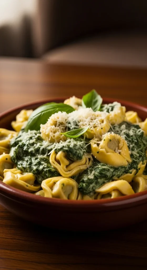 This tortellini dish is creamy, cheesy, and comforting—perfect for cold winter evenings. The spinach blends into the sauce, creating a smooth and flavorful base. The tortellini stay soft and tender while absorbing the creamy mixture. It’s simple, filling, and perfect for a relaxing night.