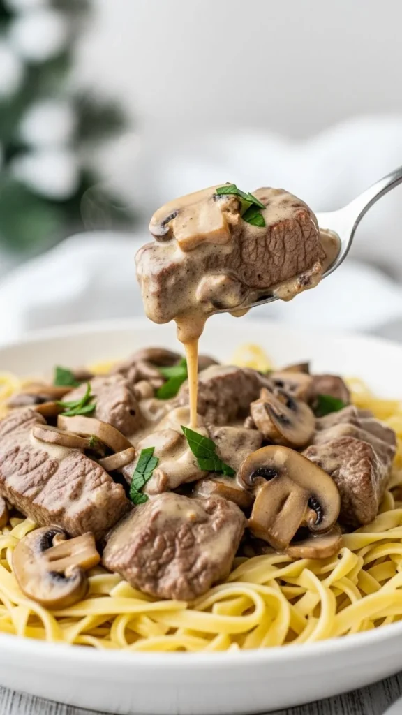 Serve warm with pepper and herbs. Add a side of vegetables if you want a balanced plate. The sauce coats the noodles nicely and thickens as it cools. It’s great for cozy winter dinners.
