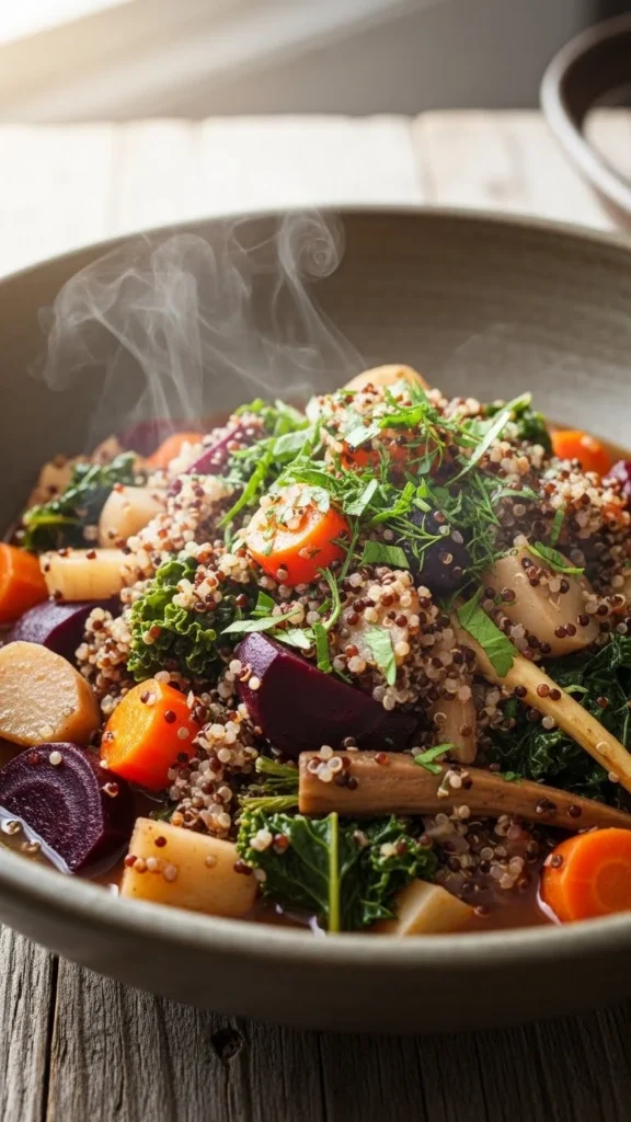 This stew becomes thick and nourishing with tender vegetables and soft quinoa. The Instant Pot blends everything into a cozy winter meal. It’s a great option when you want something wholesome.