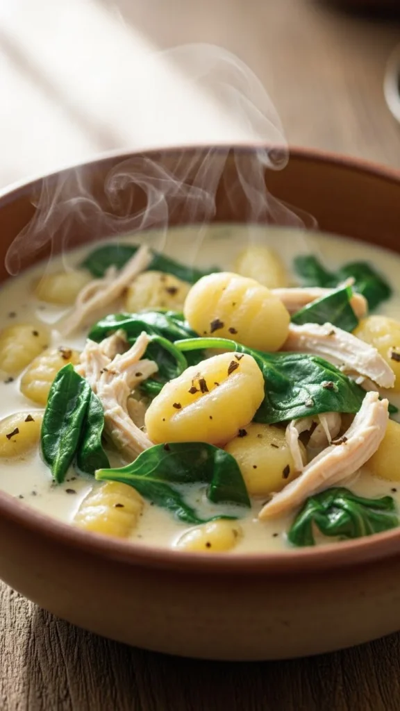 This soup becomes rich, velvety, and full of tender chicken in minutes thanks to the Instant Pot. The gnocchi turn soft and chewy, absorbing the creamy broth beautifully. It’s a cozy winter bowl without long simmering.