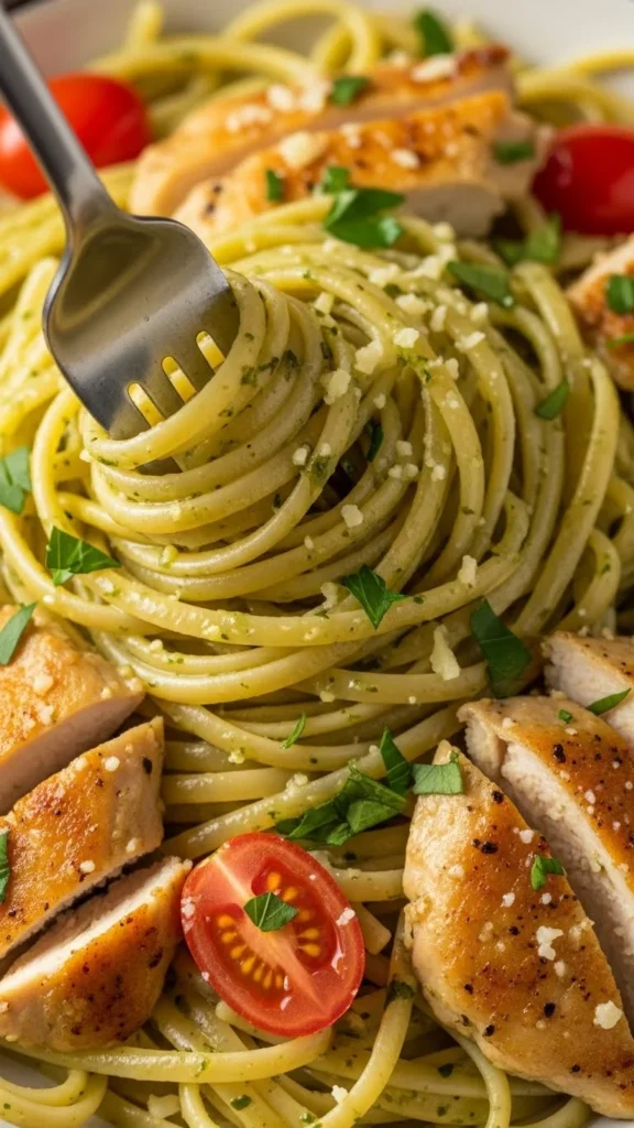Serve warm with extra pesto on top. Add grilled chicken or shrimp if you want more protein. The bright flavor keeps the dish comforting without feeling heavy. It’s great for cozy dinners.