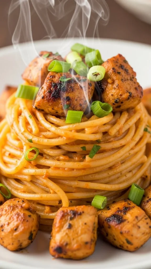 This pasta mixes gentle heat from Cajun seasoning with a creamy sauce that soothes the spice. The chicken adds heartiness and the spaghetti holds the sauce well. It’s a warm, bold winter dinner.