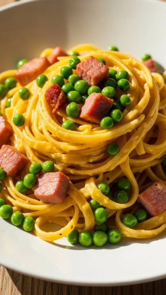 This dish combines salty ham with sweet peas in a creamy sauce that hugs the tagliatelle. The flavors are simple but deeply comforting. It’s a quick winter meal that feels familiar and warm.