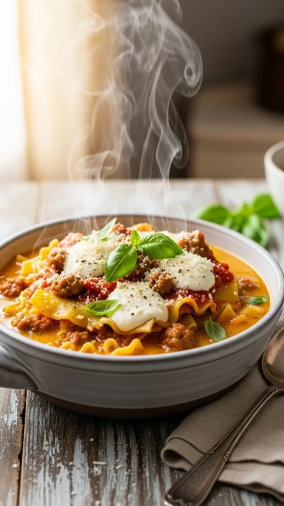 This soup tastes like creamy lasagna in a cozy winter bowl. The sausage adds rich flavor and the noodles stay soft in the thick broth. It’s satisfying without needing any baking.