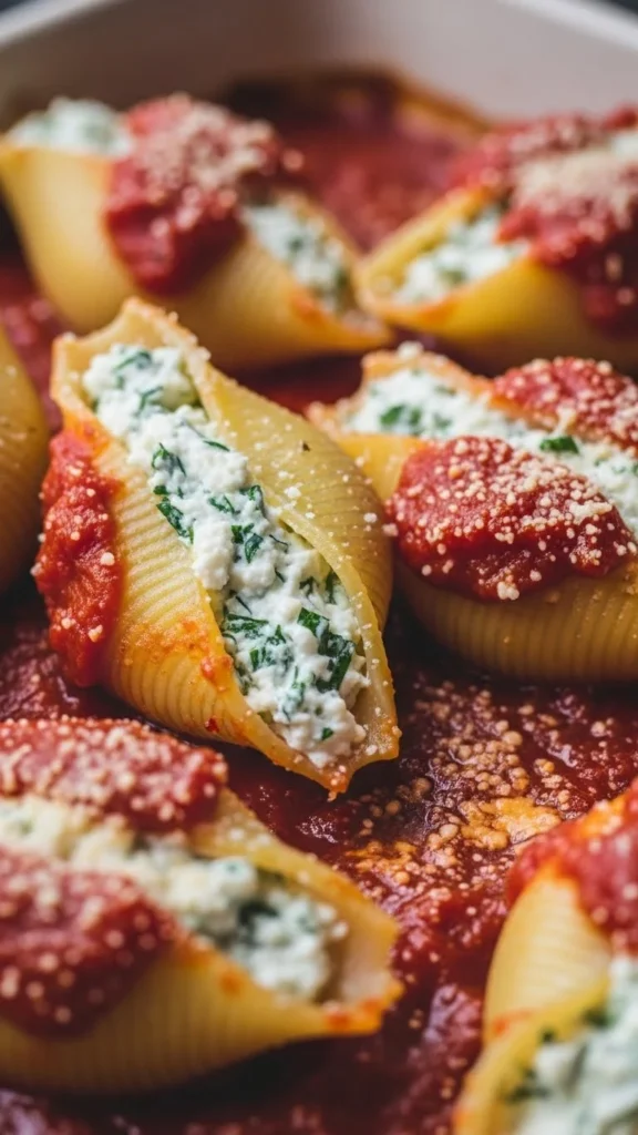 These shells bake into a creamy, rich dish with a soft, herby filling and warm sauce on top. The ricotta becomes smooth and comforting as it cooks. It’s a winter dish that feels cozy and satisfying.
