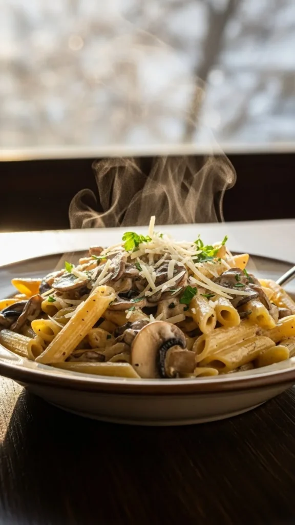 This pasta blends earthy mushrooms with smooth Alfredo sauce, creating a warm flavor perfect for cold seasons. The mushrooms absorb the sauce and add rich texture to each bite. It’s a cozy meal with simple ingredients but a restaurant-style feel.