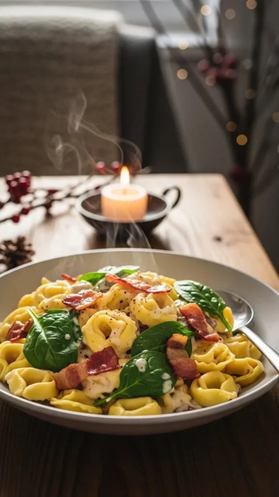 This tortellini dish cooks into a rich, creamy sauce with salty bacon and fresh spinach. The filled pasta makes the meal extra comforting and satisfying. It’s simple enough for weeknights but delicious enough for guests.