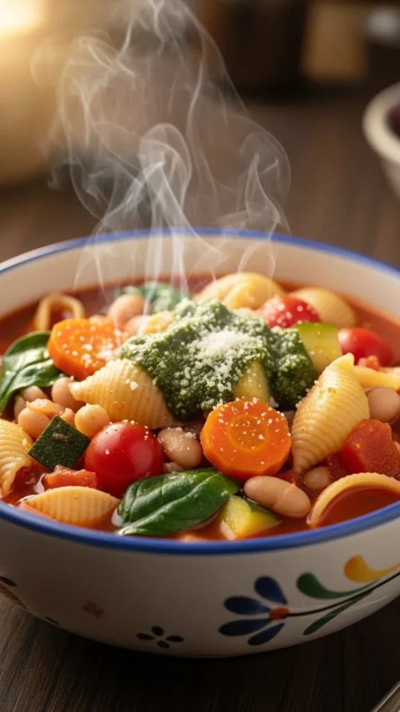 This classic Italian-style soup is packed with vegetables, pasta, and beans, making it perfect for winter. Each spoonful brings comfort and nourishment.