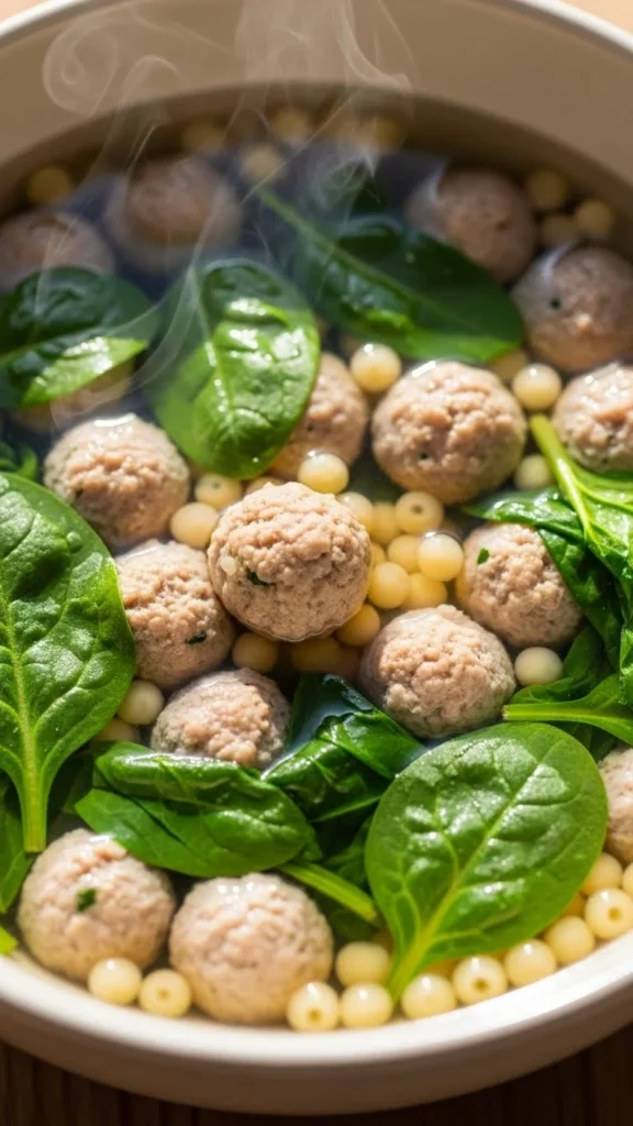This soup brings tender meatballs, soft greens, and tiny pasta together in a light but warming broth. Simple yet satisfying.