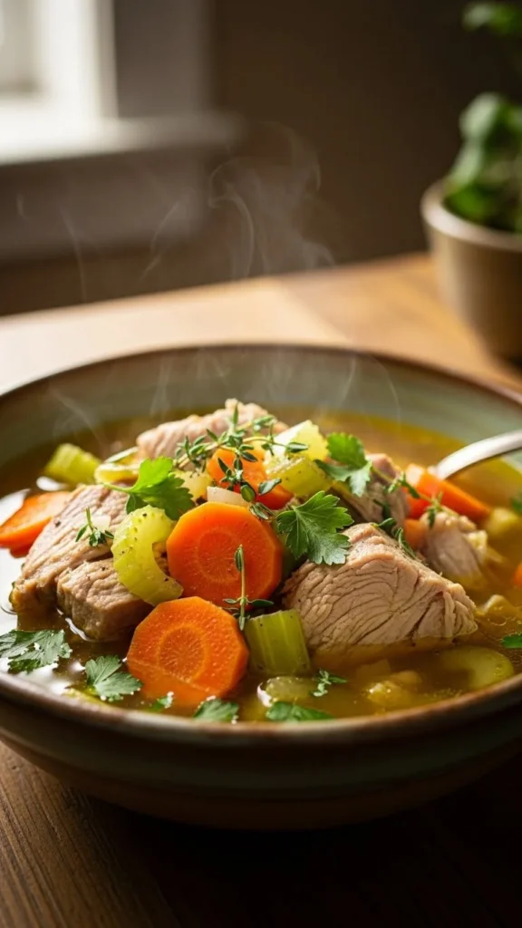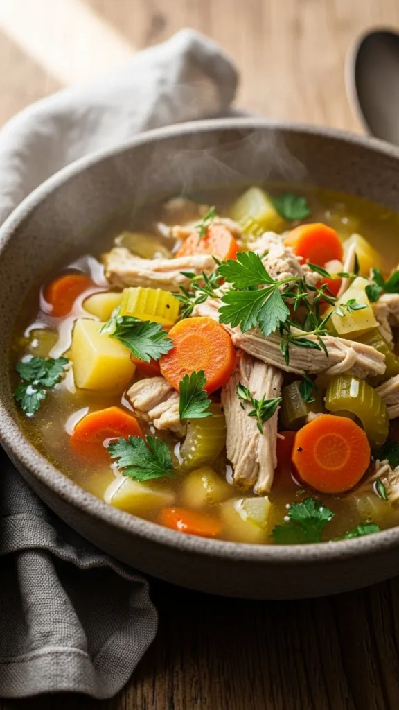 This soup is wholesome, simple, and ideal for leftover turkey. The broth is light yet comforting.