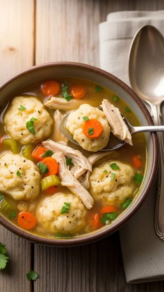 This soup is thick, cozy, and full of tender dumplings that soak up the broth. It brings nostalgic winter comfort with simple flavors.