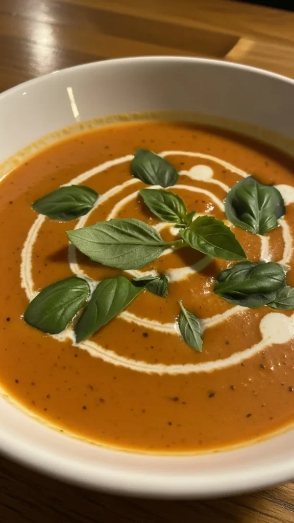 This soup is smooth, rich, and perfect for dipping sandwiches. Tomato and basil create a bright yet comforting winter bowl.